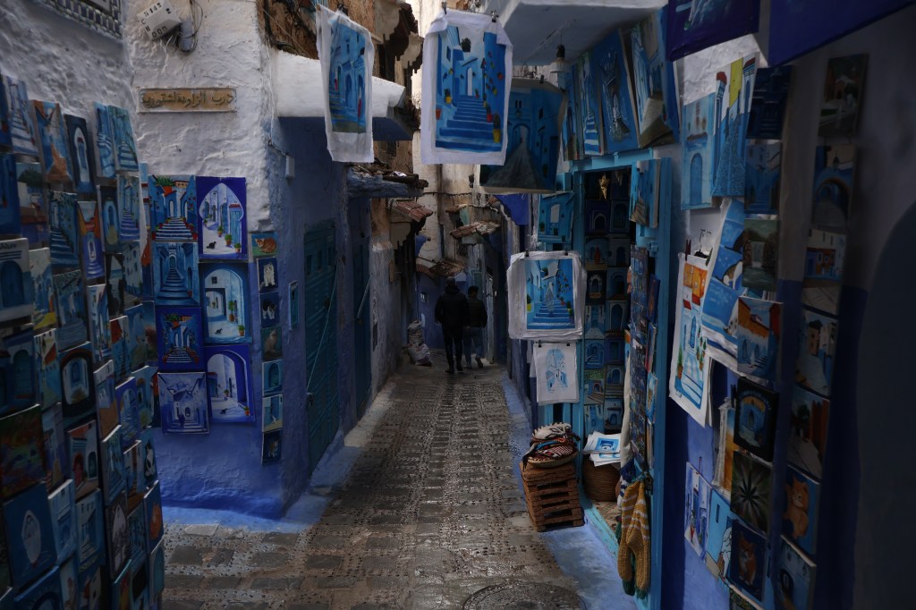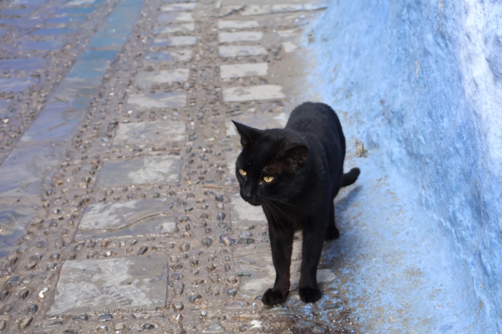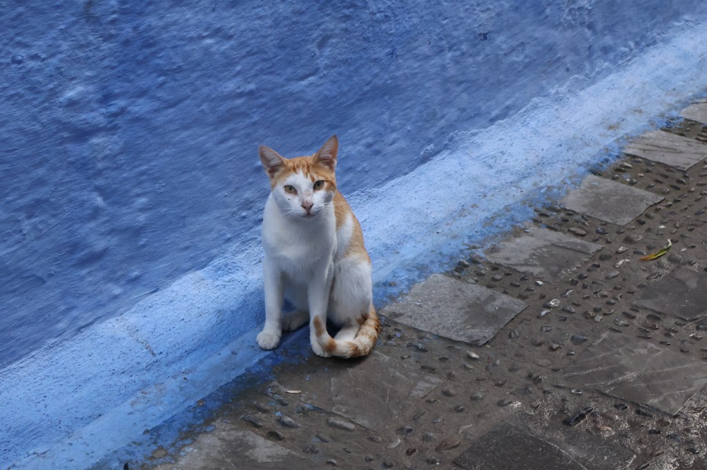The half day of Chefchouen was exactly what I expected. More markets selling the same clothes, bags, and trinkets I had seen dozens of times before in Marrakesh and Fez, the only difference here was that the aesthetic of the city was much more vibrant. The deep hues of blue painted on every building, stairway, and narrow alleyway gave a sense of wonder to me that stretched into the sky, it was refreshing to me as I had gotten so used to the dark reds, yellows and oranges of Fez, the Sahara and Marrakesh. As I wandered through the alleyways of the city I found myself less and less interested in the markets and started following the local stray cat population around, taking photos of them lounging around living their best life. I think in this moment my desire to care about Morocco had evaporated. I had come to the conclusion there was nothing this country had left that could “Wow” me, except for the cats.